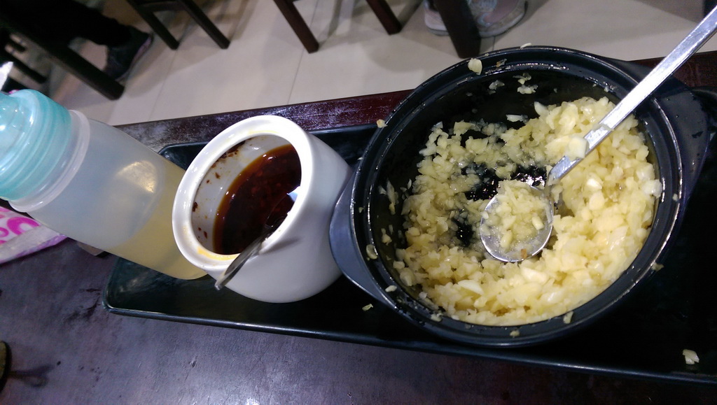 ▼一整鍋的蒜蓉讓你加,刺激你的味蕾